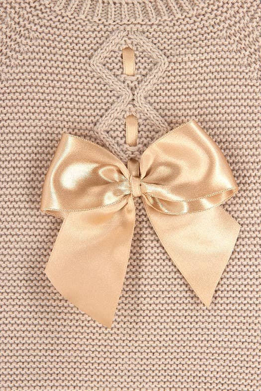3-teiliges Set aus Strickgewebe mit Strickapplikationen und Schleife.